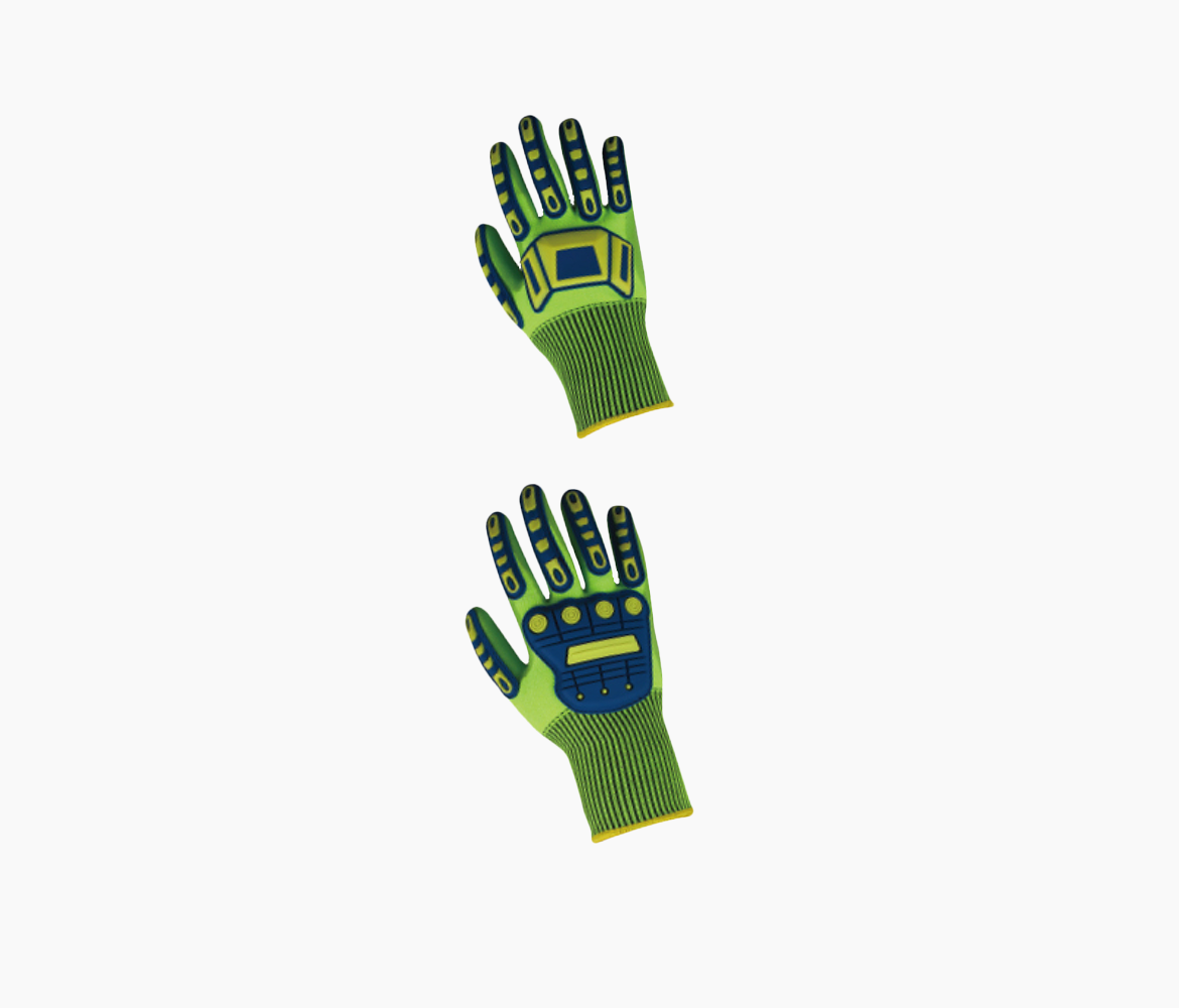 13 Gauge CE Level 5 Cut Resistant Lining Palm Coated With Foam Nitrile, TPR Molds On Fingers And Hand Back